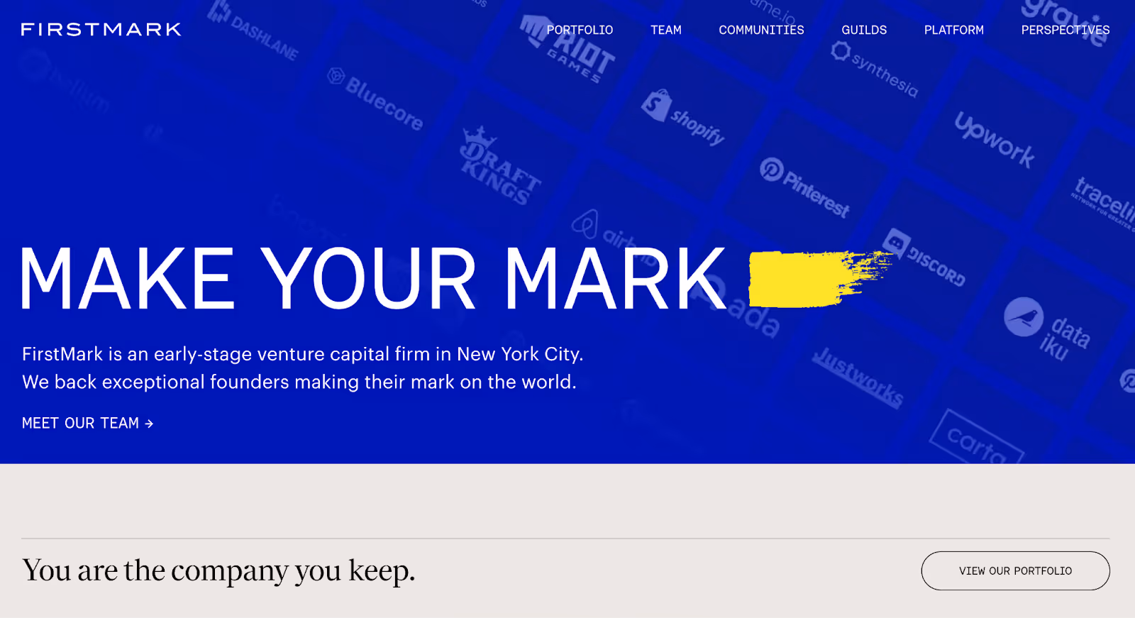 FirstMark is an early- and growth-stage venture capital firm that uses its website to emphasise community, platform value, and long-term founder support without relying on heavy storytelling.