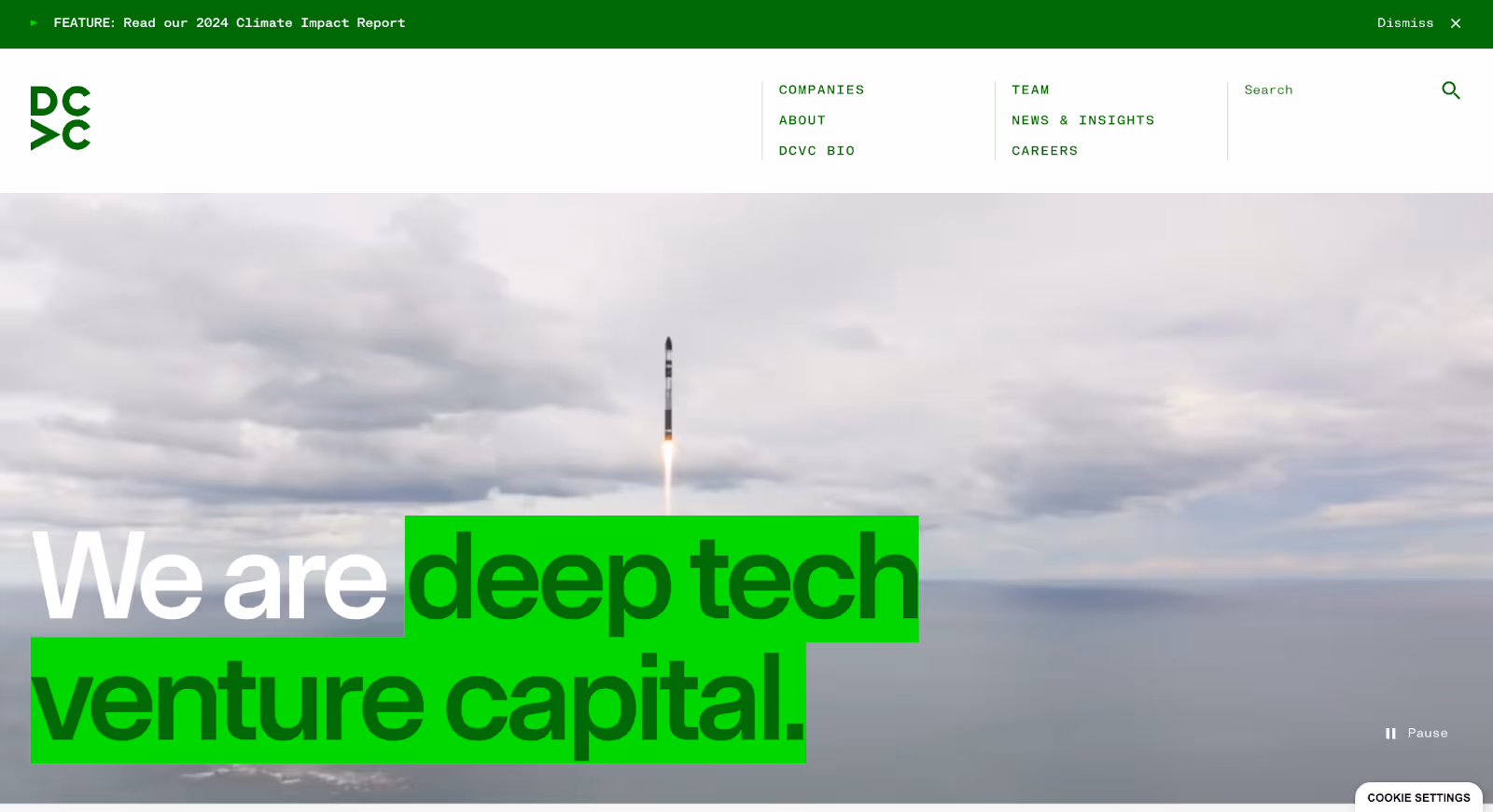 DCVC is an early-stage venture capital firm that uses its website to communicate depth, rigor, and long-term thinking positioning the firm as a serious partner for technically complex companies.