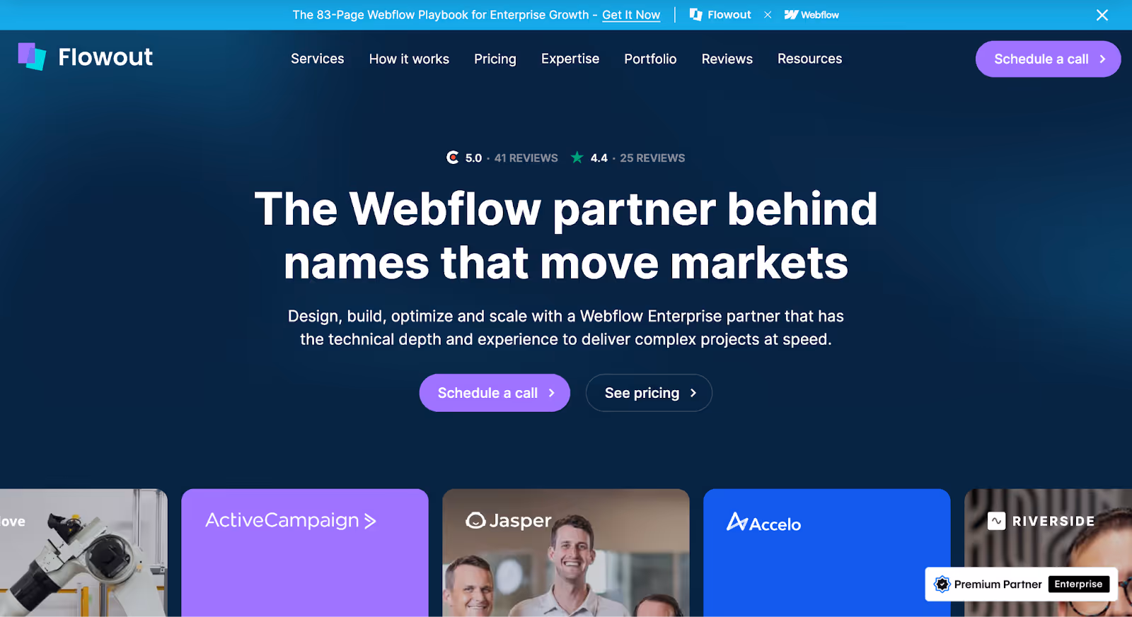 Flowout is a Webflow-focused agency that works with startups and scale-ups looking to move quickly without sacrificing structure. The team is known for its productised approach, offering clear scopes and fast turnaround times making it a common choice for startups that need reliable delivery under tight timelines.